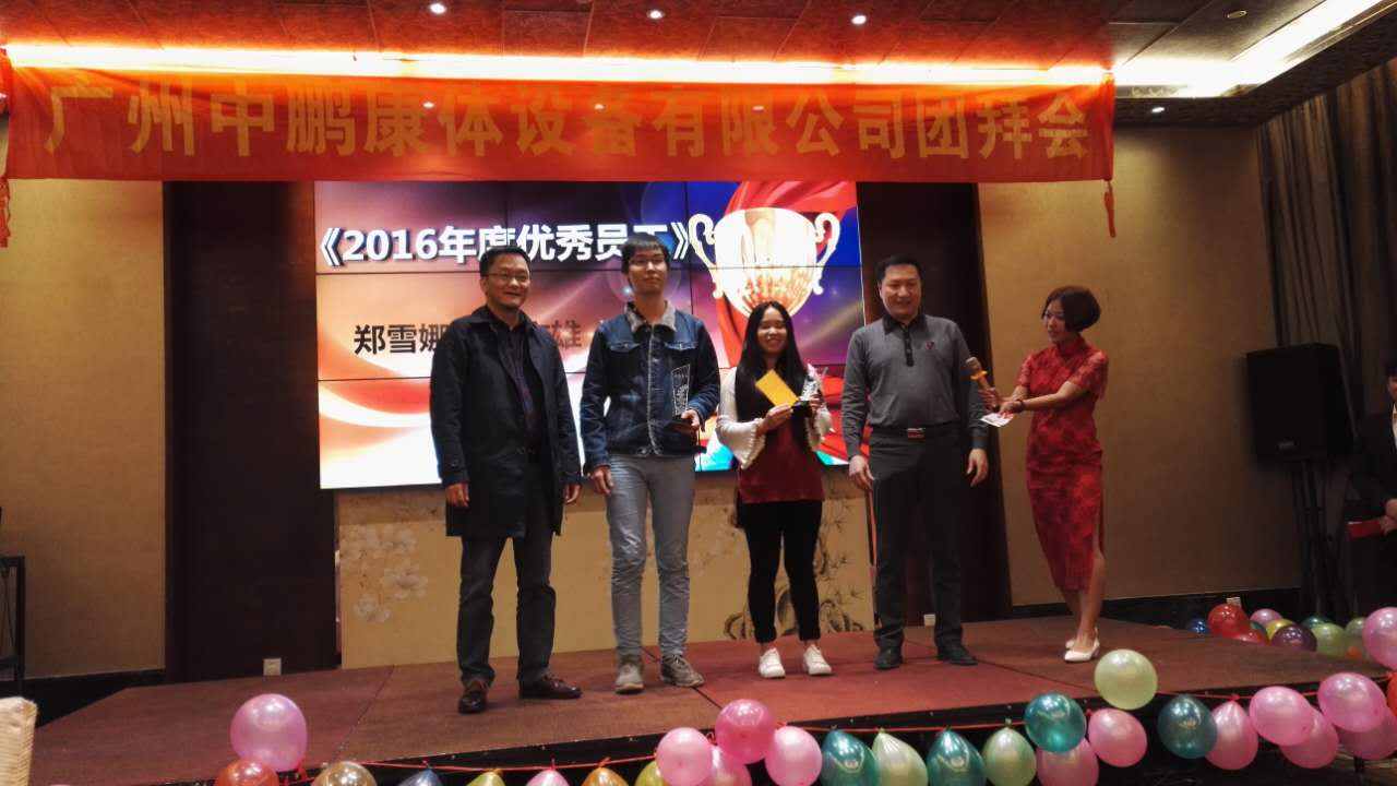 時(shí)光飛逝,歲月如梭,轉(zhuǎn)眼間忙碌的2016年已過去,充滿期待的2017年向我們走來。新的一年,孕育新的目標(biāo)和希望。廣州中鵬康體設(shè)備有限公司2017年春節(jié)聯(lián)歡會(huì)于在廣州半島豪苑隆重舉行,中鵬全體員工,與公司領(lǐng)導(dǎo)歡聚一堂,共度聯(lián)歡。公司領(lǐng)導(dǎo)祝賀并發(fā)言,公司領(lǐng)導(dǎo)為優(yōu)秀員工頒發(fā)了證書和獎(jiǎng)品,鼓勵(lì)他們戒驕戒躁,在新的一年起到模范帶頭作用,做出新的貢獻(xiàn)。